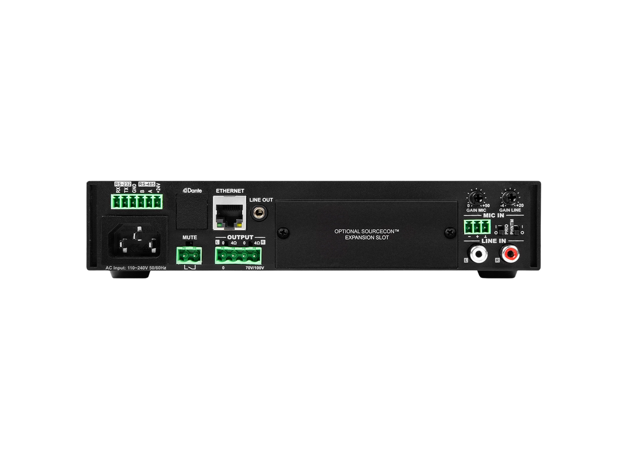 Cet amplificateur révolutionnaire primé est conçu comme un amplificateur à deux canaux utilisant la technologie d’amplification de classe D. Il peut alimenter des systèmes stéréo basse impédance avec une puissance maximale de 2 x 40 watts, et peut être ponté à une tension constante (100 V et 70 V) avec une puissance de sortie maximale de 80 watts. Une alimentation à découpage permet une large variation de tensions secteur pour une compatibilité mondiale.